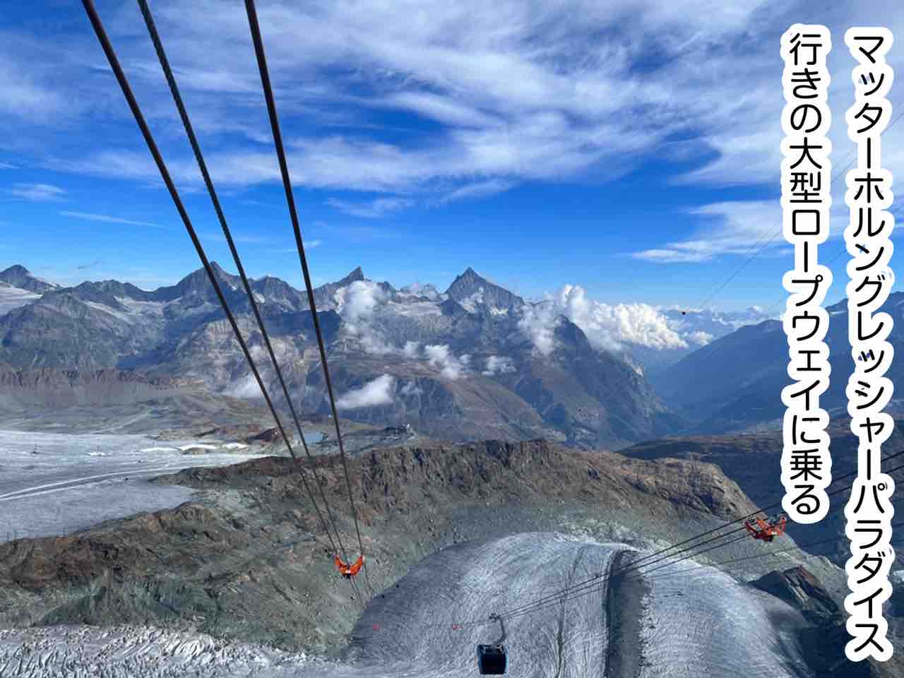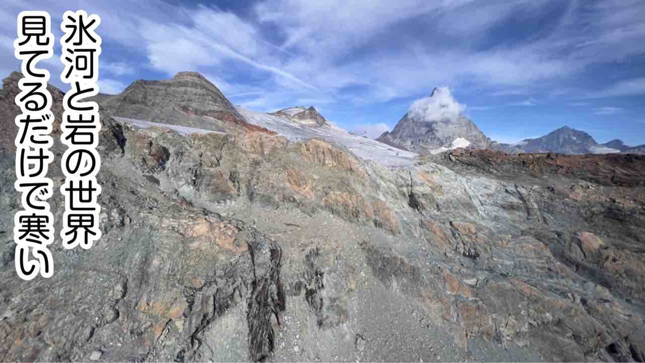 2022年10月23日 スイス旅行28〜マッターホルングレッシャーパラダイス〜 最初から読む↓ ❄️今回のルート❄️・ランダ・ツェルマット・トロッケナーシュテーク(Trockener Steg)・マッターホルングレッシャーパラダイス(Matterhorn Glacier Paradise)↓ロープウェイでトロッケナーシュテークまで戻ってそこからハイキングでツェルマットまで戻る私達はほぼ始発で行ったので大きいロープウェイだったけど貸し切り時間が遅くなればなるほど混むので早朝がオススメこれもあまり知られてないみたいだけどツェルマットでロープウェイのチケット買う時にクリスタルライド乗りたいって言うとその為のチケットが買える。マッターホルンちょうど雲に隠れてる↓一気に風が強くなる終点に到着!まずは展望台へ上着を二重マフラー手袋も必須風がとにかく強くて冷たい手がかじかんで写真撮るのも一苦労雪…季節感が謎になる展望台で撮った写真どれ見ても私たちの顔辛そうで笑顔が一切無い笑前日にここに向かってる観光客を見たけど、その人ノースリーブにハーパンだったからどうやって生き延びたのか謎