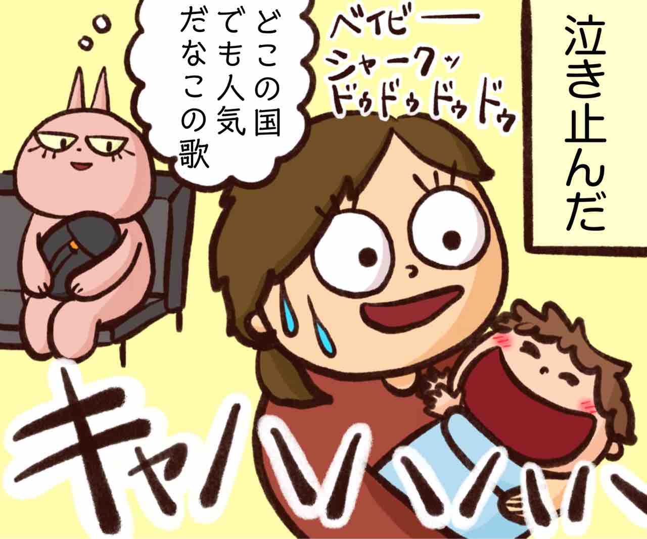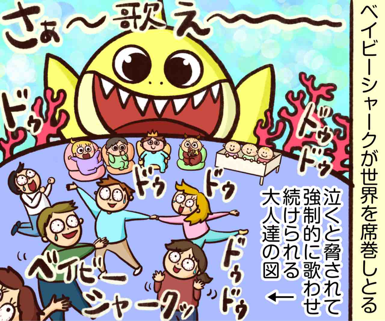 2022年10月19日 スイス旅行26〜あのサメが世界を席巻中〜 どこ行ってもこの歌聞くベイビーシャーク…歌うのやめられないシステムベイビーシャークに助けられた話↓ ベイビーシャークのコアなファンの赤子↓