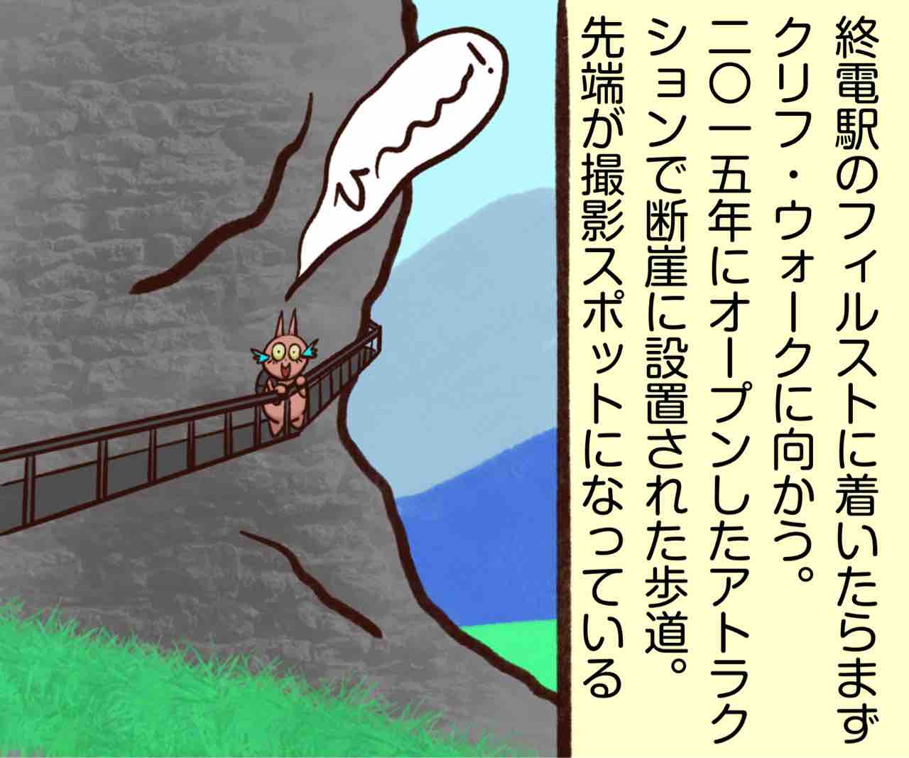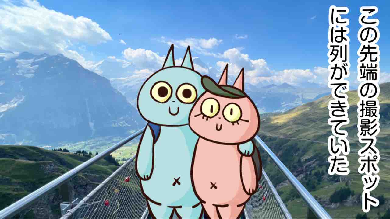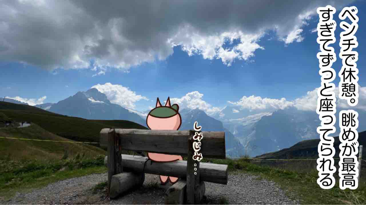 2022年10月09日 スイス旅行20〜フィルスト〜 ⛰今回のハイキングコース⛰グリンデルワルド→フィルスト→クリフウォーク→バッハアルプゼー→グリンデルワルドこのアトラクションは無料!誰でも行ける高い所が極端に怖くなければクリフウォークの先端の床にはガラスの部分があって本来なら真下が見えてスリル倍増するらしいが私たちが行った時はガラスが曇ってて全然下見えなかった笑先端まで行くのに列を並ばないとだけど無料だしここから見える景色は最高なので並ぶ価値はあると私は思う!フィルストのハイキングもお気に入りに殿堂入り