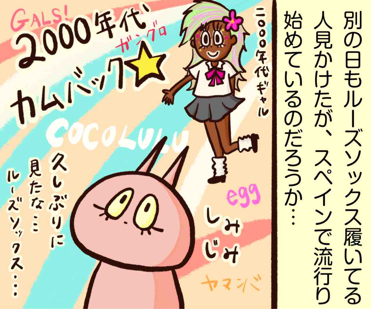 2023年01月25日 化石化したと思ってた流行の復活 COCOLULUとeggってまだ存在する?ルーズソックスをバルセロナで見るとは思わなかった。流行って戻ってくるもんだけど絶対復活しないだろうって思ってたもんがまた蘇ると本当にビックリ!マレットとルーズソックス日本でもまた流行ってる?
