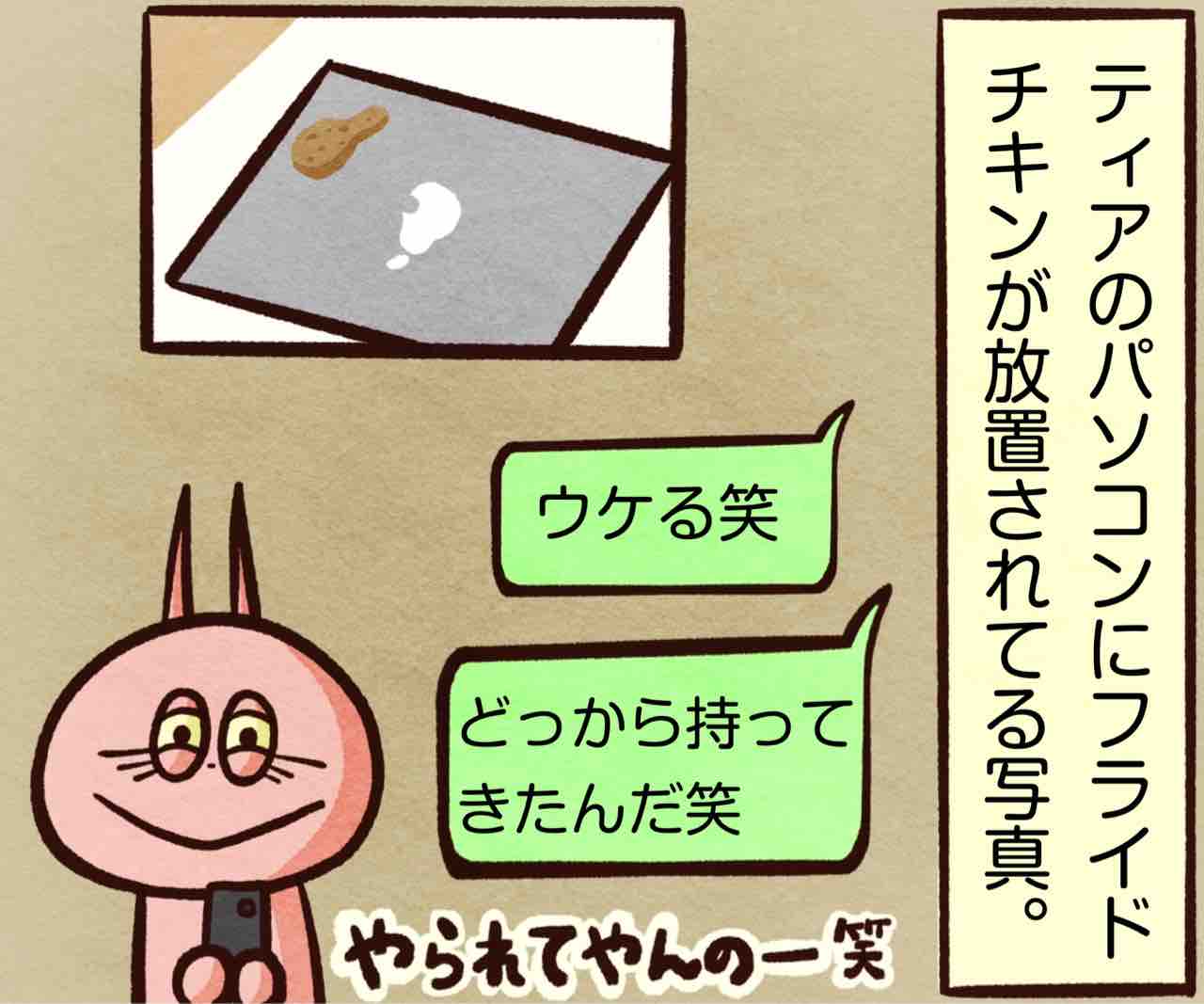 2024年03月24日 アナタには何に見える? ブログネタ:【公式】「これって私だけ?」と思うこと に参加中! ⚠️汚い画像が含まれてます⚠️了承の上、ご覧くださいまし🐱ニャーは茶トラのメスの猫ちゃん🐱さぁ、よぉく見るんだ。分かったかい?正解は….フライドチキンに見えた愚か者は正直に挙手!!!!尚、かーちゃんはこの会話既読無視!笑私もかまちょに嫌がらせされた話⬇︎ ‼️アプリでフォローしてね‼️ フォローしてくれたら泣いて喜びます クリックして投票してくれたら かまちょも喜びます❤️ 絵日記ランキング にほんブログ村かまちょの写真をアップしたりくだらないことを呟いてるよ🎶ブログには載せていないイラストもアップしてるよ✨
