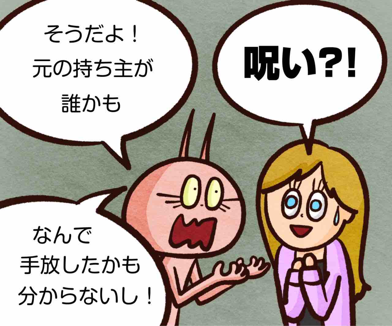 2024年03月23日 オカルト脳 ブログネタ:【公式】「これって私だけ?」と思うこと に参加中! 新生活が始まる時期だけども何か揃える時、皆さんは中古とかでも大丈夫ですか?私は元の持ち主が家族とか友達じゃない限り中古はちょっと抵抗がある…怪談とか聞いてると大体、中古品とかアンティーク品で怖い体験してる人多いイメージ…あ、でもシークエンスはやともさんの怪談で新品の家電製品が呪われててレビューにも書かれてたって話もあったな。これがその怪談だぜ⬇︎‼️アプリでフォローしてね‼️ フォローしてくれたら泣いて喜びます クリックして投票してくれたら かまちょも喜びます❤️ 絵日記ランキング にほんブログ村かまちょの写真をアップしたりくだらないことを呟いてるよ🎶ブログには載せていないイラストもアップしてるよ✨