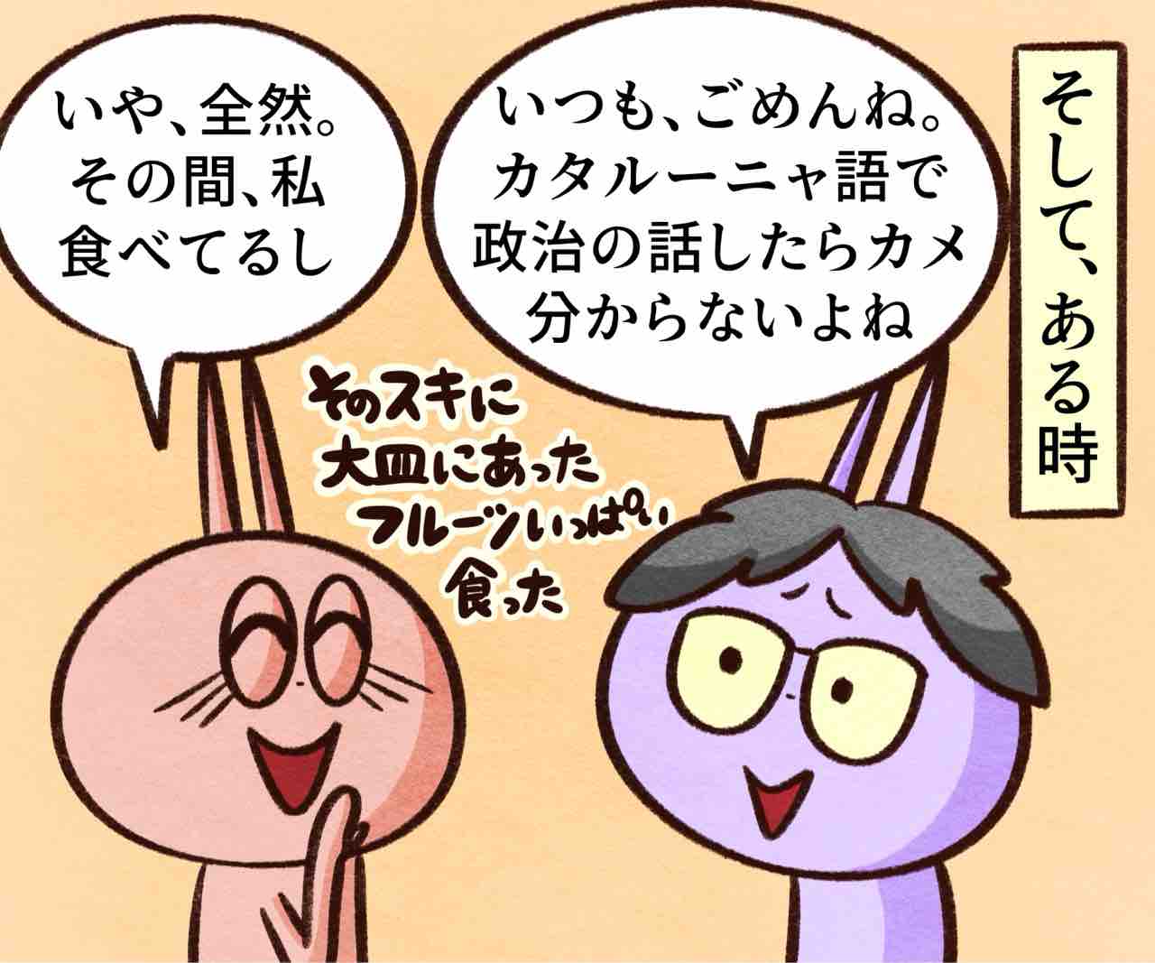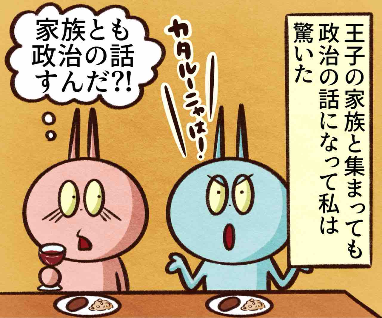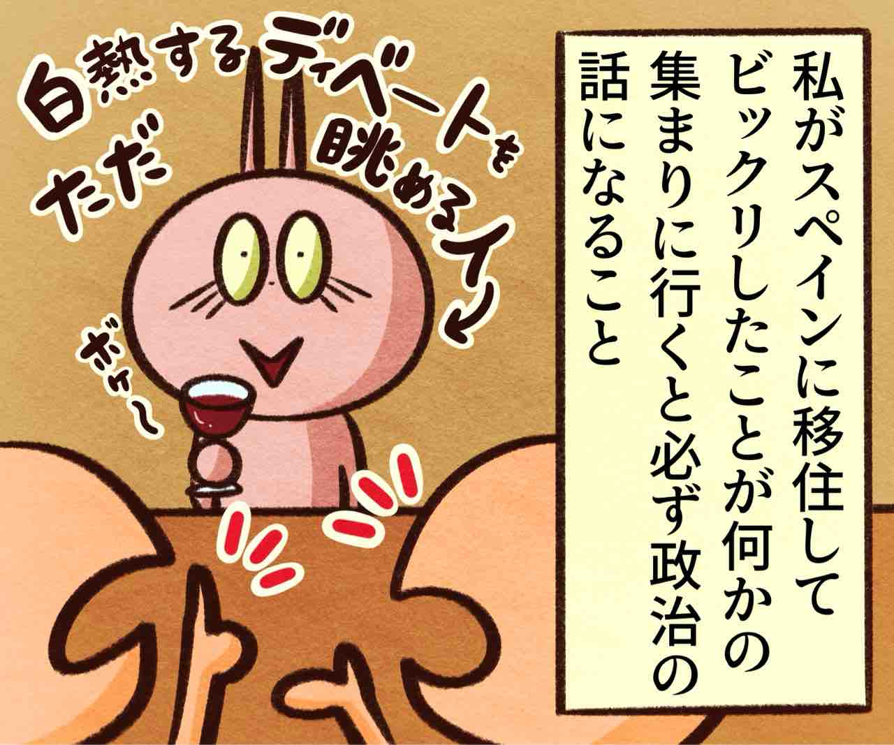 2025年05月29日 スペイン人の好きな話題 ブログネタ:【公式】「これって私だけ?」と思うこと に参加中! 政治の話なんて日本語でされてもよく分からんし。日本で友達とかとも政治の話なんてしたことない気がするな。気付いたらシレッと総理大臣代わっててオラ驚いただ。スペインだとかなりの確率で政治の話になるから凄いなって笑こんな無頓着じゃダメなんだろうけど政治関連のニュース見るとイライラしちゃうからどうしても避けちゃうのよねぇ😩かまちょのLINEスタンプ販売中❤️‼️アプリでフォローしてね‼️ フォローしてくれたら泣いて喜びます クリックして投票してくれたら かまちょも喜びます❤️ 絵日記ランキング にほんブログ村かまちょの写真をアップしたりくだらないことを呟いてるよ🎶ブログには載せていないイラストもアップしてるよ✨