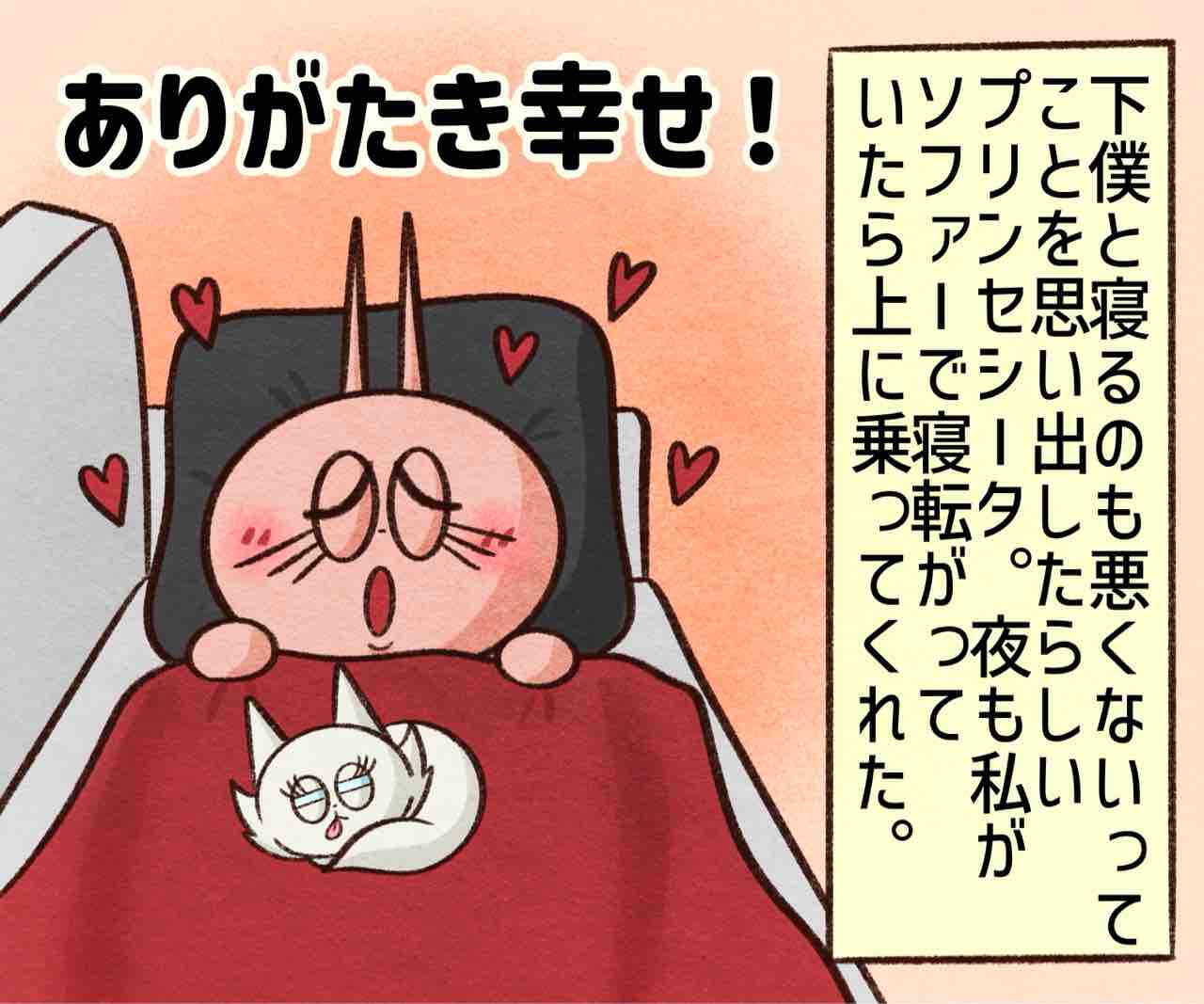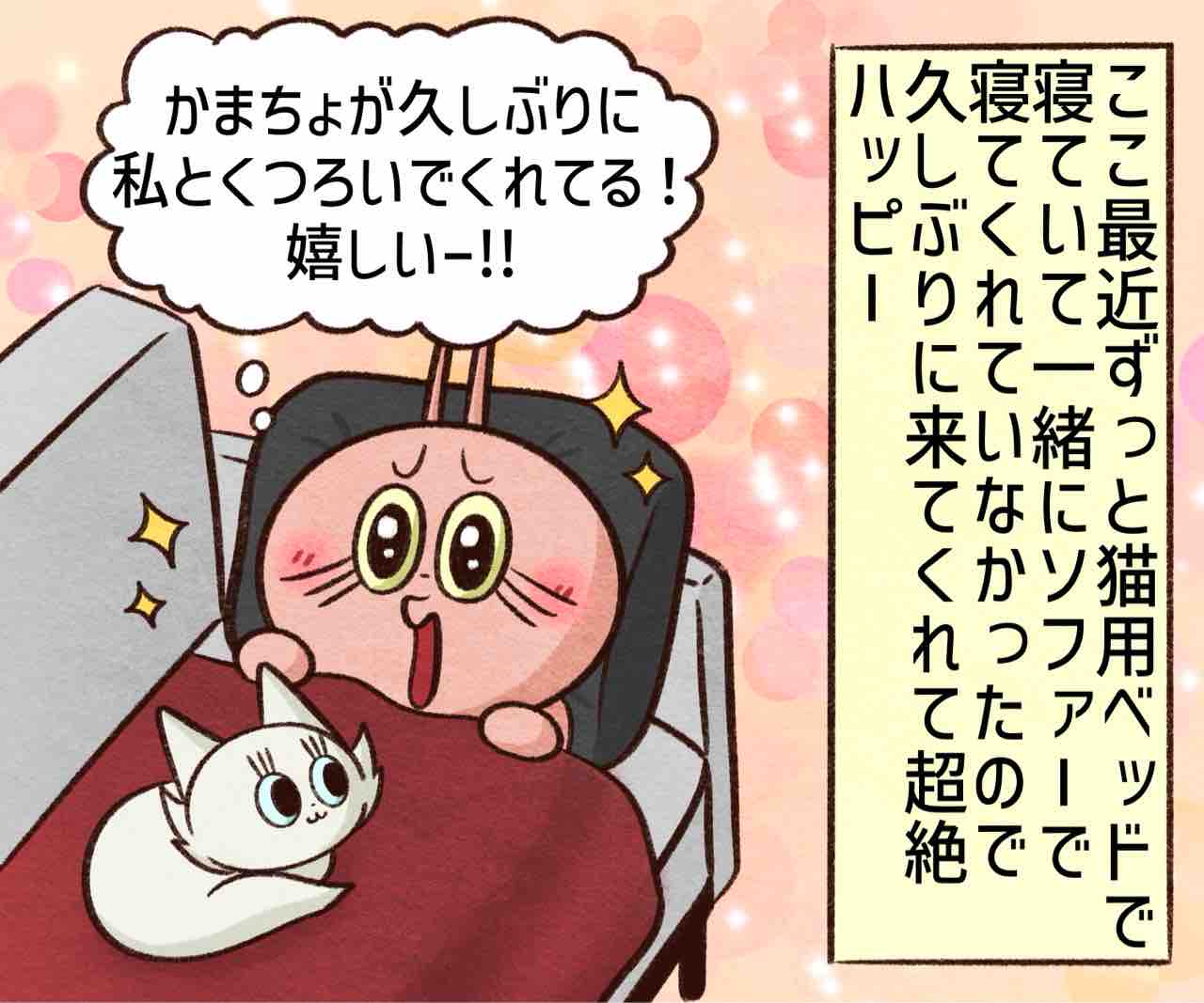 2026年02月12日 睡眠の質を犠牲にしてまで… ブログネタ:【公式】あなたが感じる「幸せ」ってどんな時? に参加中! 猫用ベッドにどハマりしてた頃⬇︎ 人間の上で寝ることを思い出す⬇︎ また猫様用ベッド存在無視されてる。最近は人間がソファーの上にいなくてもソファーで昼寝してる。0か100なのウケる😂ソファーの上で寝るの寒いし朝起きたら体痛くて全く休んだ気がしないけどそれでもかまちょと寝られる方が良い!🥹✨かまちょのLINEスタンプ販売中❤️‼️アプリでフォローしてね‼️ フォローしてくれたら泣いて喜びます クリックして投票してくれたら かまちょも喜びます❤️ 絵日記ランキング にほんブログ村かまちょの写真をアップしたりくだらないことを呟いてるよ🎶ブログには載せていないイラストもアップしてるよ✨